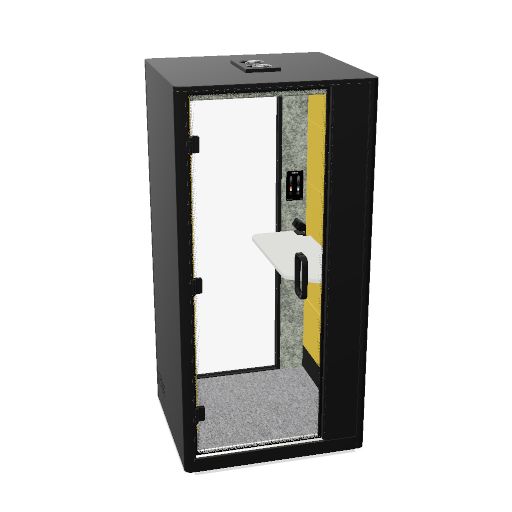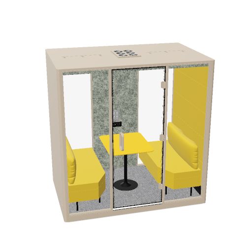 Calma Small - 100x110 (PRODUCT NAME: CALMA | DIMENSION: 100X110 | INTERIOR FELT COLOR: FLT02 | EXTERIOR COLOR: PW9017 | UPHOLSTERY STYLE INTERIOR PANEL: ERA | UPHOLSTERY COLOUR INTERIOR PANEL: NU_A3_03 | TABLE: YES | TABLE TYPE: FIXED TABLE | TABLE TOP MATERIAL: HDF POWDER COATING | POWDER COATED TABLE: PW1500 | TABLE METAL: N0001 | UNIVERSAL SOCKETS: GERMAN TYPE | OCCUPANCY INDICATOR: NO | TOUCH PANEL: YES | SPRINKLER OPTION: NO | CEILING COLOR: FLT02 | CARPET COLOR: CORAL342)