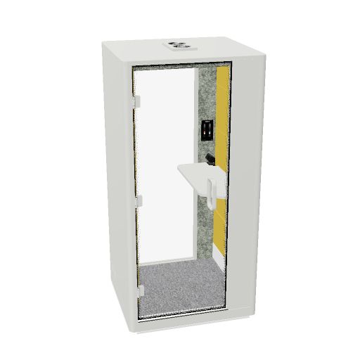 Calma Small - 100x110 (PRODUCT NAME: CALMA | DIMENSION: 100X110 | INTERIOR FELT COLOR: FLT03 | EXTERIOR COLOR: PW7030 | UPHOLSTERY STYLE INTERIOR PANEL: ERA | UPHOLSTERY COLOUR INTERIOR PANEL: NU_A3_15 | TABLE: YES | TABLE TYPE: FIXED TABLE | TABLE TOP MATERIAL: HDF POWDER COATING | POWDER COATED TABLE: PW1500 | TABLE METAL: N0001 | UNIVERSAL SOCKETS: GERMAN TYPE | OCCUPANCY INDICATOR: NO | TOUCH PANEL: YES | SPRINKLER OPTION: NO | CEILING COLOR: FLT03 | CARPET COLOR: CORAL342)